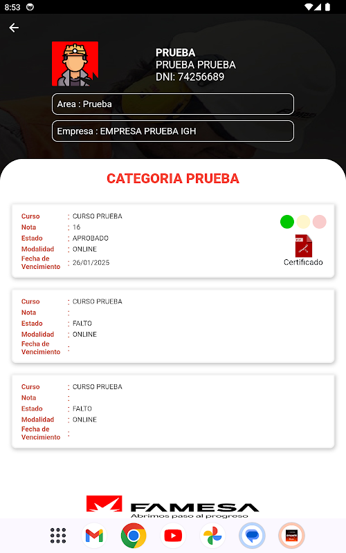 फेमेसा पाठ्यक्रम