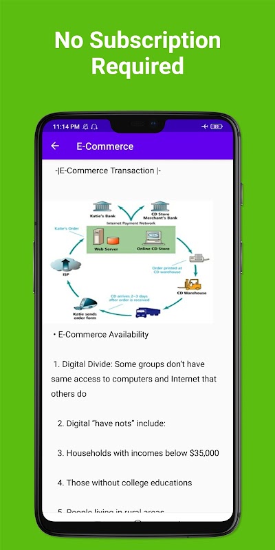 इलेक्ट्रॉनिक कॉमर्स छात्रों के लिए एक निःशुल्क ऑफ़लाइन शैक्षिक ऐप है, कंप्यूटर विज्ञान और बीबीए कार्यक्रम के छात्र ई-कॉमर्स के बारे में भी सीखते हैं। यह ऐप ई-कॉम बिजनेस में काफी मददगार है। आज के युग में ई-कॉमर्स का विकास बहुत महत्वपूर्ण है और ई-कॉमर्स की दर आजकल अधिक हो गई है।