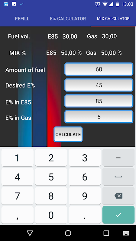 This APP has three different calculators for people who want to use ethanol mixtures in their cars.