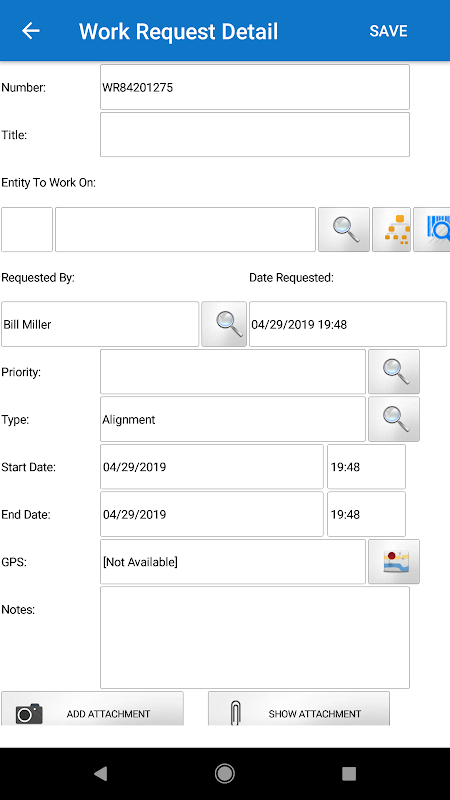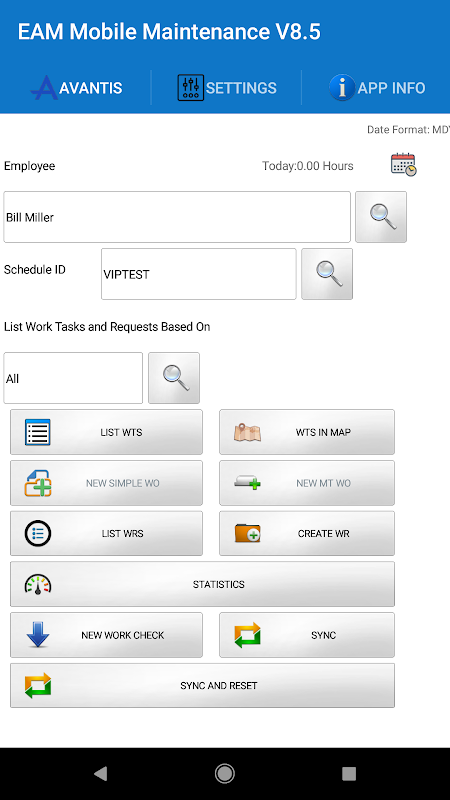 Enter work order time, new work requests, record activities and statistics, sync back to Avantis.PRO when connected to a wireless network.