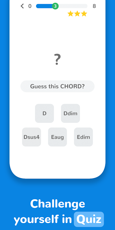 आप विशिष्ट कॉर्ड कुंजियों, कॉर्ड प्रकार और सप्तक पर कार्यक्रम कर सकते हैं। राग सुनें और सही उत्तरों का अनुमान लगाने की कोशिश करें।