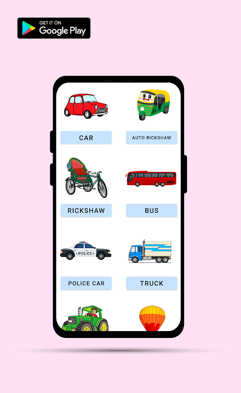 फूलों के नाम, वाहनों के नाम और एनिमेटेड तुकबंदी जो बहुत ही आकर्षक है। यह एक शैक्षिक प्रारंभिक है