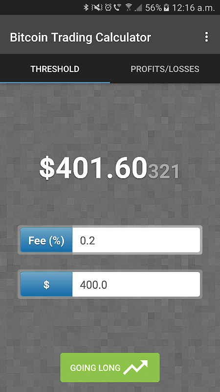 आसान Bitcoin ट्रेडिंग कैलक्यूलेटर आप लाभ सीमा है कि अपने Bitcoin व्यापार एक लाभ बनाने के लिए शुरू हो जाएगा गणना करने के लिए अनुमति देता है।