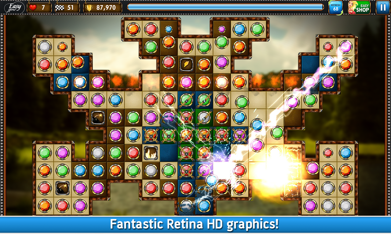 Discover Easy Gems - best jewel match three puzzle game. Enhanced gameplay, amazing power-ups and addictive game mechanics in match three puzzle game.