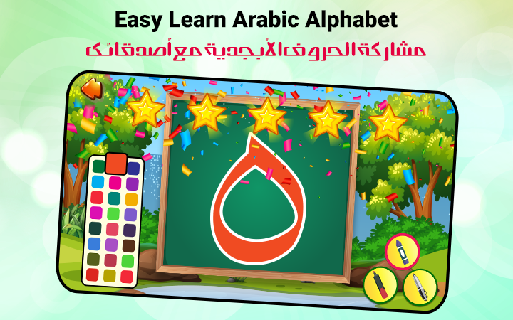 सबसे आश्चर्यजनक और चंचल शिक्षा खेलों में से एक है जो एक मजेदार और आकर्षक तरीके से अरबी सिखाता है।