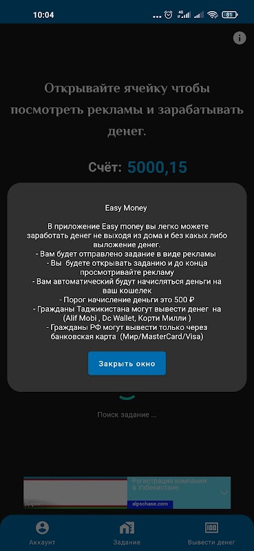 Приложение похоже на сервис толока, где нужно выполнять мелкие задания и получать за это вознаграждение.