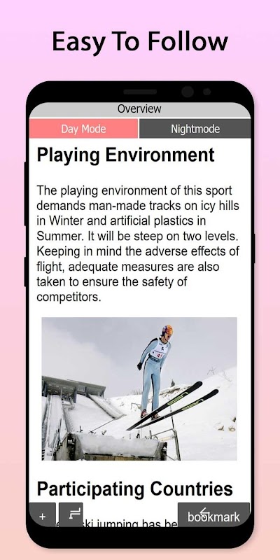 इस एप्लिकेशन में स्की जंपिंग के बारे में कुछ सामग्री इस प्रकार है: