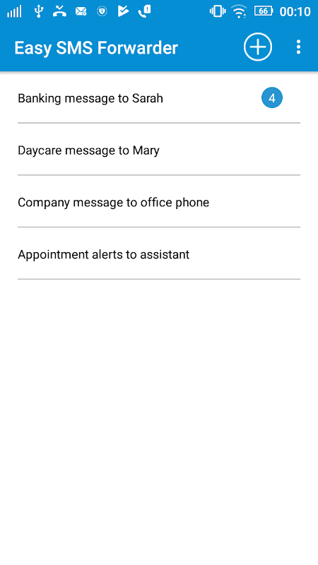 Easy SMS forwarder is a simple app that enables either full or selective forwarding of text messages to multiple phone numbers.