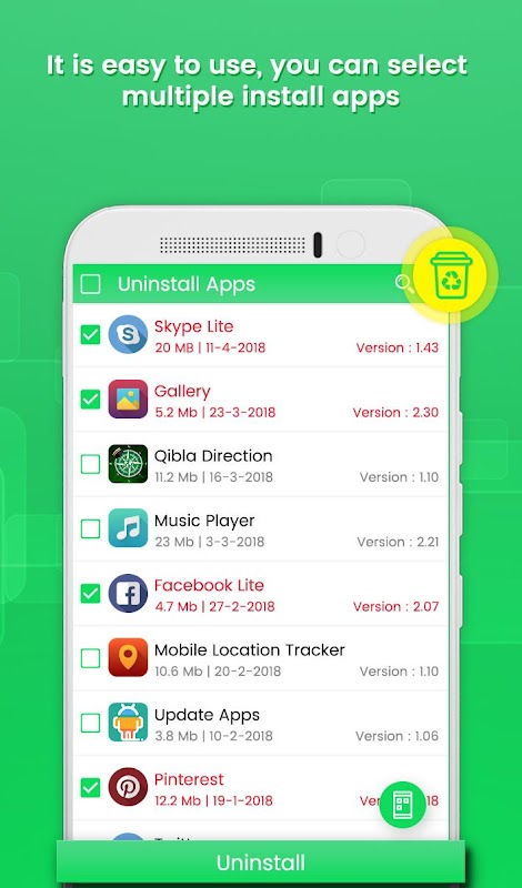 नि: शुल्क और आसान अनइंस्टॉलर एंड्रॉयड के लिए कई ऐप्स को अनइंस्टॉल करने के लिए एक उपकरण है।