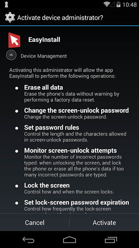 • EasyInstall अनुप्रयोग से डिवाइस प्रशासक अनुमति निकालें।