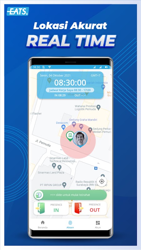 EATS यहां आपको एक बहुत ही आरामदायक और आसान कार्य अनुभव देने के लिए है। ईएटीएस में प्रदान की गई विशेषताएं सभी विभागों और सभी कर्मचारियों के लिए ऑनलाइन उपस्थिति सुविधाओं, गतिविधि सबमिशन, ओवरटाइम आवेदनों के साथ-साथ परमिट और छुट्टी, पेरोल गणना और चेक पेस्लिप को केवल ईएटीएस एप्लिकेशन के माध्यम से आसानी से आसान बनाती हैं।