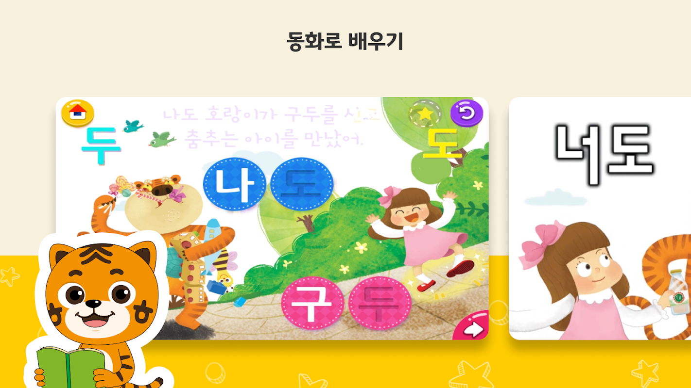 नंबर 5: 'ㅇ' समर्थन पत्र सीखना - यह 'ㅇ' समर्थन के साथ एक सीखने की विधि है। आप शब्द खेल, चित्र पुस्तकों और सीखने के माध्यम से अक्षरों को सीख सकते हैं।
