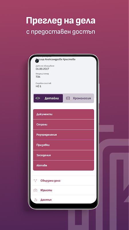 • इलेक्ट्रॉनिक फ़ोल्डर और अदालती मामलों का इतिहास, जिनकी पहुंच प्रदान की गई है;
