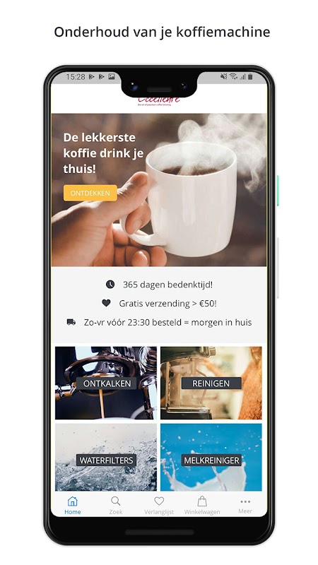 Eccellente एप्लिकेशन के माध्यम से जल्दी और आसानी से अपने कॉफी मशीन के लिए रखरखाव उत्पादों का आदेश दें।