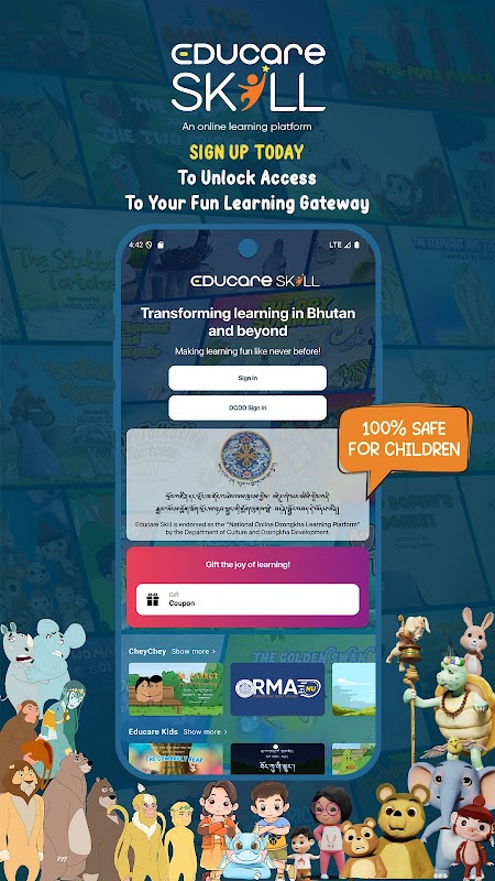 कहानियों, खेलों, एनिमेशन, ट्यूटोरियल और परीक्षा संसाधनों सहित 1,000 से अधिक एपिसोड के साथ, एजुकेयर स्किल ज़ोंगखा सीखने और उसमें महारत हासिल करने के लिए एक संपूर्ण मंच है - जो सभी उम्र और पृष्ठभूमि के शिक्षार्थियों के लिए डिज़ाइन किया गया है।