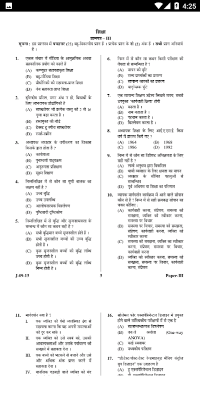 शिक्षा प्रश्न पत्र हिंदी और अंग्रेजी दोनों संस्करणों में।