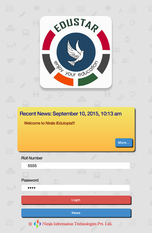 इस Nirals Eduniv पर आधारित एक स्मार्ट स्कूल प्रबंधन app है। इस छात्र के निशान, होमवर्क, समाचार, privage संदेश, फीडबैक, समय सारिणी आदि कि सीधे छात्र को स्कूल से भेजा जाता है पता चलता है। समर्थन अधिसूचना पुश।