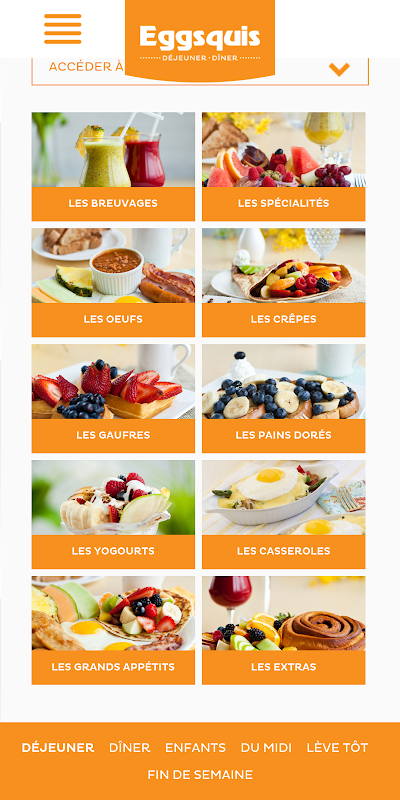 Permet d'afficher les restaurants Eggsquis sur la carte, de trouver le restaurant le plus près. Affiche les menus par catégorie, ainsi que les menus du jour de chaque succursale.