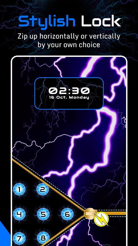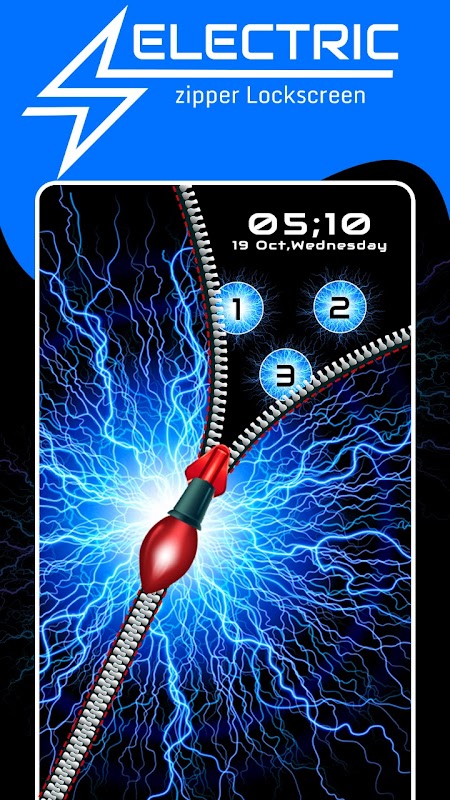 इलेक्ट्रिक लॉक स्क्रीन सभी फ़ोनों के लिए एक लॉक स्क्रीन है जो ज़िपर का उपयोग करके अनलॉक होती है
