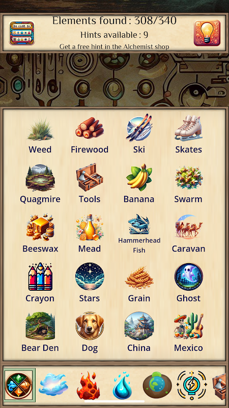 आपका लक्ष्य जादुई स्थानों से यात्रा करते हुए और विभिन्न तत्वों को इकट्ठा करते हुए कीमिया विज्ञान के रहस्यों और संभावनाओं को अनलॉक करना है। अपनी प्रयोगशाला में तत्वों को मिलाएं और अनूठी प्रतिक्रियाओं और गुप्त सूत्रों की खोज करें। आप जितने अधिक संयोजन अनलॉक करेंगे, उतने ही अधिक अवसर और जादुई आइटम आपके लिए उपलब्ध होंगे।