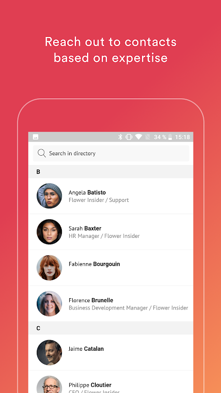 पहुंच - जब तक आप अपने संपूर्ण कंपनी के ज्ञान और गतिविधि तक पहुंच पाते हैं। किसी भी कार्य स्थान पर अपडेट रहें। अपने कर्मचारी निर्देशिका का त्वरित उपयोग सुनिश्चित करें कि आप कहीं भी और कभी भी विशेषज्ञों तक पहुँच सकते हैं।