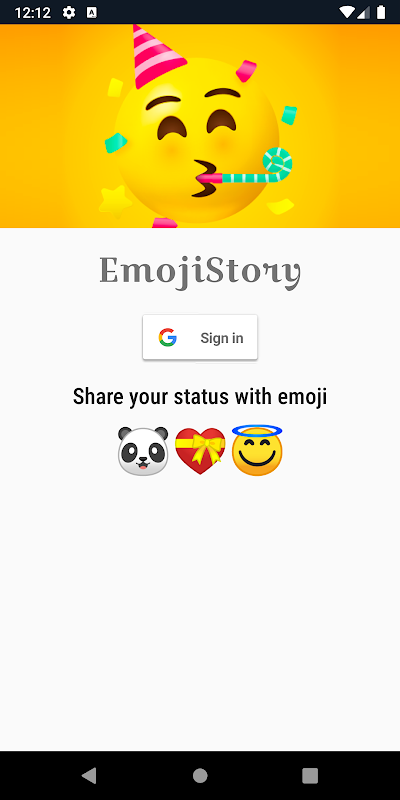 अपडेट करें और इमोजी-केवल स्टेटस देखें! उपयोगकर्ता अपडेट समय द्वारा आदेश दिए गए ऐप में अन्य उपयोगकर्ताओं के नाम और इमोजी देख सकते हैं। आप Google के साथ अपने खाते में बना सकते हैं या साइन इन कर सकते हैं। रचनात्मक रहें और इमोजी के साथ एक कहानी बताएं! आपकी स्थिति केवल कुछ इमोजी का उपयोग कर सकती है।