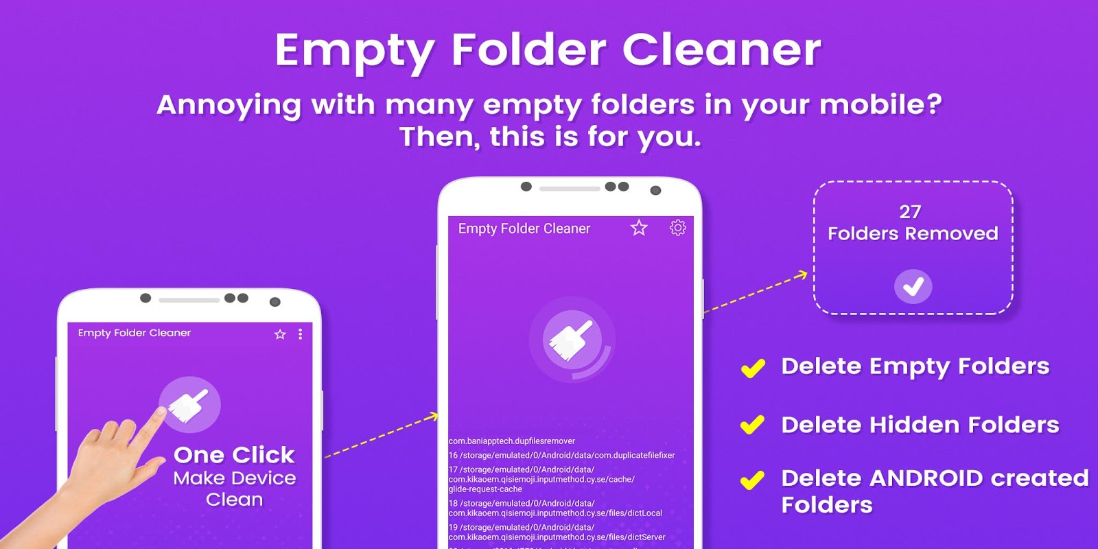 - Simple and Easy Empty Folder Cleaner App scans Android, Hidden and SD Card.
