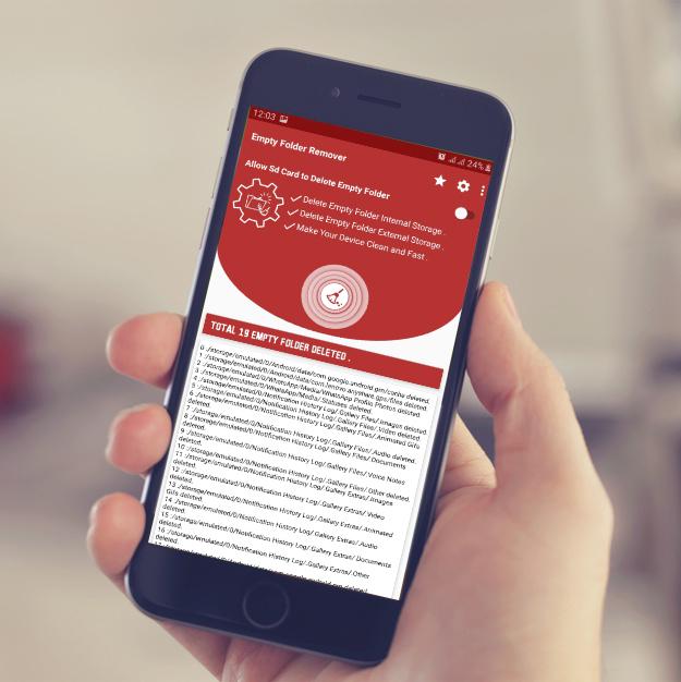 उपकरण आपको सभी खाली और जंक फ़ोल्डर को हटाने देते हैं जो आपकी मोबाइल मेमोरी में बहुत आसानी से और आसानी से पूरी तरह से मुफ्त और ऑफलाइन मोड में रखे जाते हैं। कुछ समय में अधिकांश ऐप ने हमारी मोबाइल मेमोरी में खाली फ़ोल्डर और जंक फ़ोल्डर बना दिया, इसलिए इसके लिए हम इस सभी फ़ोल्डर को सेकंड में हटाने के लिए ऐसे अच्छे टूल लाते हैं। लोग आपके डिवाइस स्टोरेज से खाली फोल्डर या बेकार फोल्डर को डिलीट करने के लिए थक चुके हैं, इसलिए इस ऐप को एक सेकंड में सभी स्टाफ को डिलीट करने के लिए इंस्टॉल करें। सभी खाली ट्रैश फोल्डर को पूरे फोन पर स्कैन किया जाता है और आसानी से और जल्दी से हटा दिया जाता है जो आपके मोबाइल को तेज और सुरक्षित बनाता है। सभी जंक फोल्डर को आसानी से हटा दें।