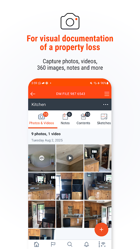 असीमित फ़ोटो, वीडियो, 360° इमेज और नोट्स लें—ठोस सबूत के लिए समय/तारीख, उपयोगकर्ता और GPS मेटाडेटा के साथ कमरे के अनुसार व्यवस्थित।