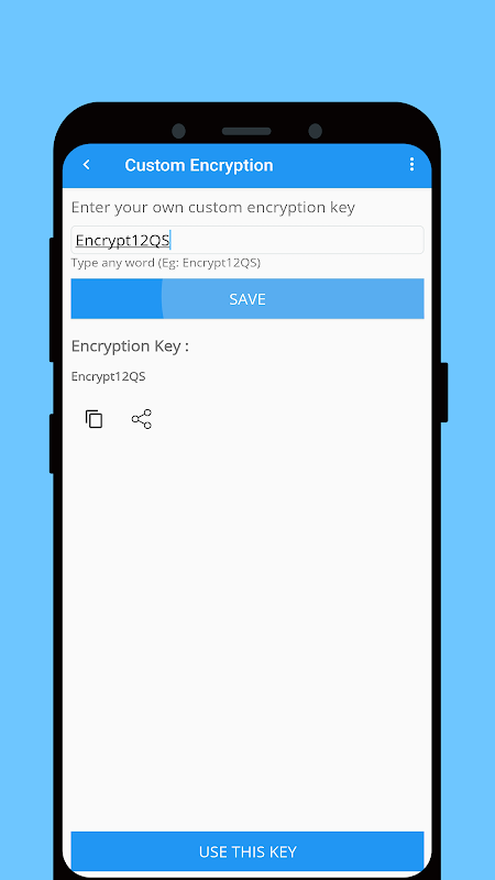App has three encryption levels (default, advanced and custom) that let you pick the complexity of the encryption process. The custom encryption lets you build your encryption method using your keywords. This app is ideal if you want to have some fun while sending secret messages to your friends.