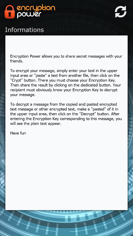 Encryption Power allows you to share secret messages with your friends.