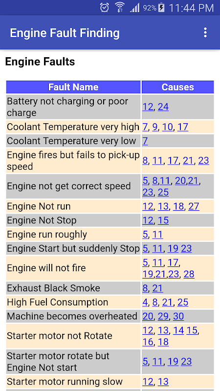 इंजन फॉल्ट फाइंडिंग आधारित फॉल्ट नाम और कारण