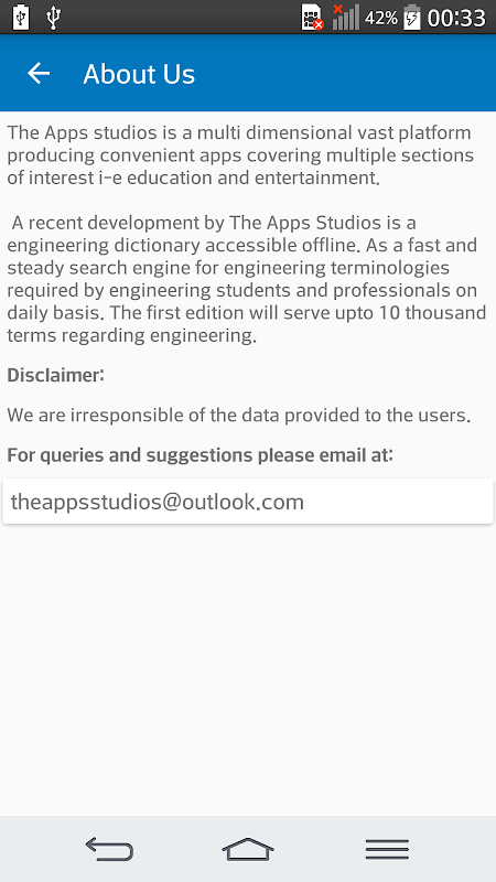 Engineering dictionary Offline is a free tool which helps the user to search for more than 10K terminologies and definitions in its first edition! It covers mainly civil, electrical and mechanical engineering fields of studies. You can add words to expand the database to make it a custom dictionary for you and can search for words you added.