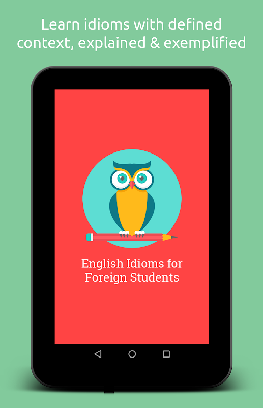 विदेशी छात्रों के ऐप के लिए मुफ्त अंग्रेजी मुहावरों में मुहावरे शामिल हैं: बोलचाल, साहित्यिक और लौकिक; सभी स्पष्ट रूप से समझाया और अनुकरणीय है। मुहावरे एक स्पष्ट रूप से परिभाषित संदर्भ के भीतर स्थित हैं, और इसमें शामिल कुंजी शब्द के विषय के अनुसार संग्रह को दस श्रेणियों में विभाजित किया गया है।