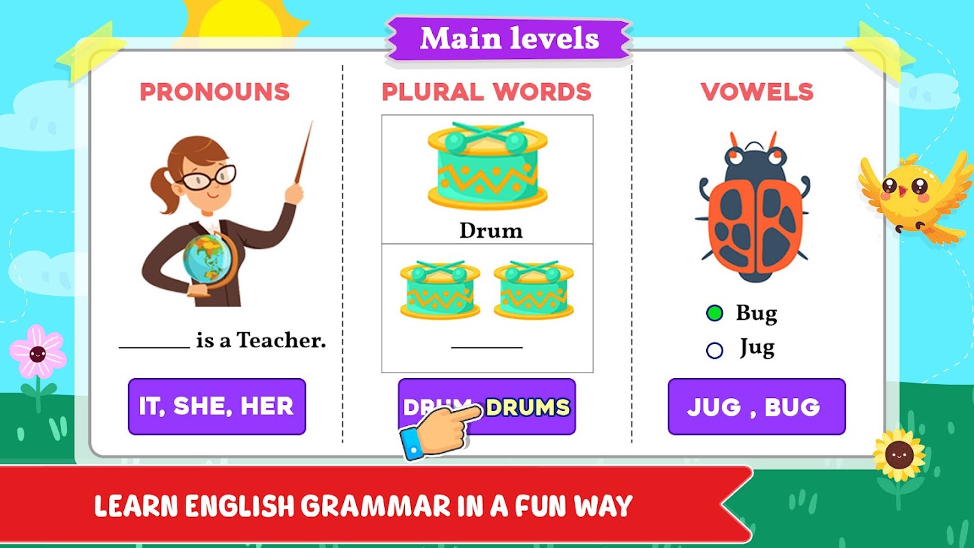 मज़ेदार प्रश्नोत्तरी और परीक्षणों के साथ अपने अंग्रेजी व्याकरण कौशल का परीक्षण करें। सभी उम्र के लिए बिल्कुल सही.