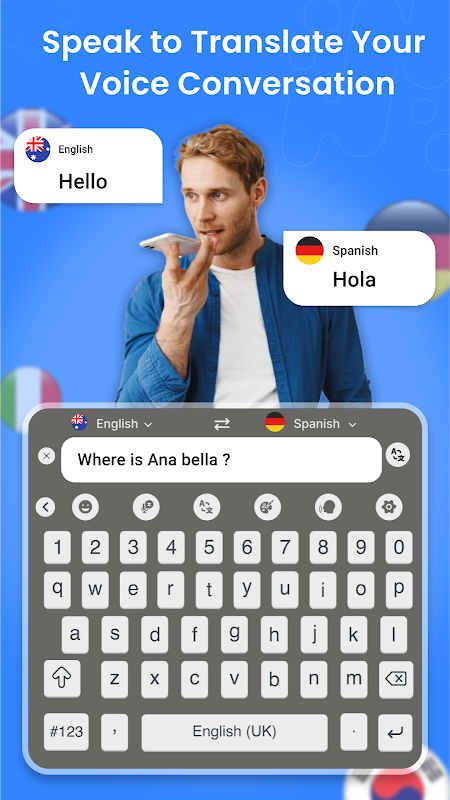 कीबोर्ड, चैट अनुवादक से तुरंत अपनी आवाज़ या टेक्स्ट का अनुवाद करें