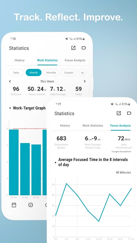 • Track your focus trends & peak performance times