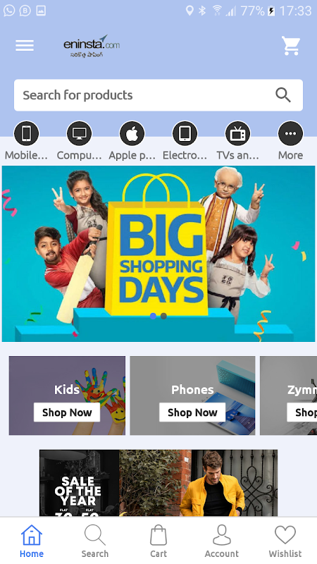Online shopping with EnInsta is very easy as you get to shop from the comfort of your home and get products delivered at your doorstep. By downloading the EnInsta free online shopping app on your Android phone or tablet, you can effortlessly browse our massive collection of more than 80 crore products from multiple categories including mobile phones, fashion wear, electronic devices, accessories and consumer durables.