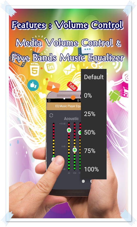 संगीत तुल्यकारक बास बढ़ावा और Virtualizer प्रभाव के साथ बैंड तुल्यकारक के साथ एक मात्रा स्लाइडर है।