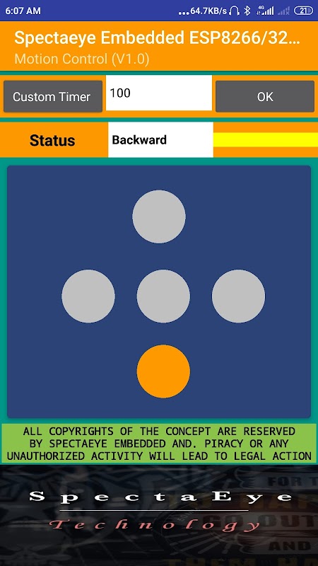 ऐप मोशन कंट्रोल और जॉयस्टिक वाईफाई संचार के साथ रिमोट कंट्रोल है।