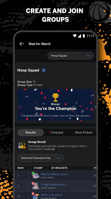 - Improve your pick selections by using the new ‘ESPN+ Game Predictor’ for more insight on each matchup to crown your Men's and Women's National Champions.