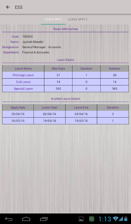 कर्मचारी स्वयं सेवा है कि एक कर्मचारी की मदद मोबाइल एप्लिकेशन प्रबंधित करने के लिए है उसका / उसकी