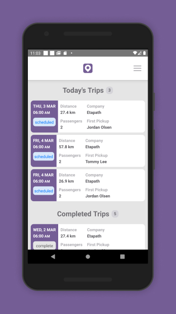 एक ड्राइवर के रूप में, आपसे एटापथ ड्राइवर एप्लिकेशन का उपयोग करने की अपेक्षा की जाएगी जो आपको उन यात्राओं तक पहुंच प्रदान करता है जो आपको दैनिक आधार पर सौंपी जाती हैं।