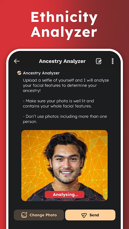 जातीयता विश्लेषक चेहरा: अपनी जातीय पृष्ठभूमि को उजागर करने के लिए अपने चेहरे का विश्लेषण करें।