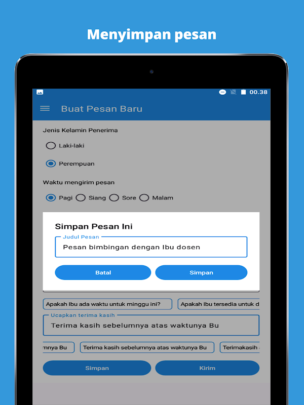 व्याख्याताओं के साथ चैट कैसे करें में नैतिकता एक एप्लिकेशन है जिसे विशेष रूप से छात्रों को पाठ संदेशों के माध्यम से व्याख्याताओं के साथ प्रभावी ढंग से और विनम्रता से संवाद करने में मदद करने के लिए डिज़ाइन किया गया है। यह एप्लिकेशन गाइड और विभिन्न संदर्भ प्रदान करता है जो छात्रों को विभिन्न उद्देश्यों के लिए व्याख्याताओं से संपर्क करते समय उचित, औपचारिक और उचित वाक्य बनाने में मदद कर सकता है, जैसे मार्गदर्शन मांगना, कक्षा कार्यक्रम के बारे में पूछना, या अंतिम असाइनमेंट परामर्श।