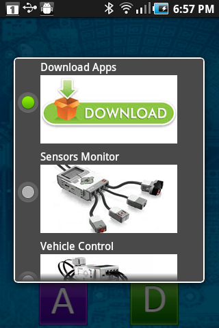 EV3 कमांडर ब्लूटूथ में / मोटर / डाउनलोड Mindstorms EV3 कि नियंत्रण एक आवेदन पत्र है। डाउनलोड / हटाना / चलाने / दूर से रोकने के कार्यक्रम, निगरानी सेंसर / नियंत्रण मोटर्स, और 3 अलग मोटर नियंत्रण मोड सहित 5 अलग अलग प्रकार के होते हैं।