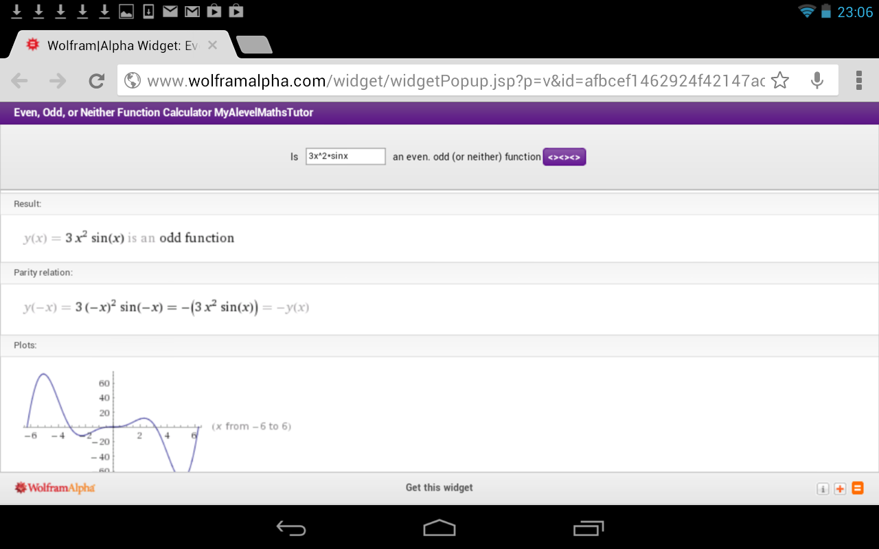 Enter any function and this calculates if its even or odd (or neither) . It does just what it says on the tin. So if you have work that you need to double check, then look no further.
