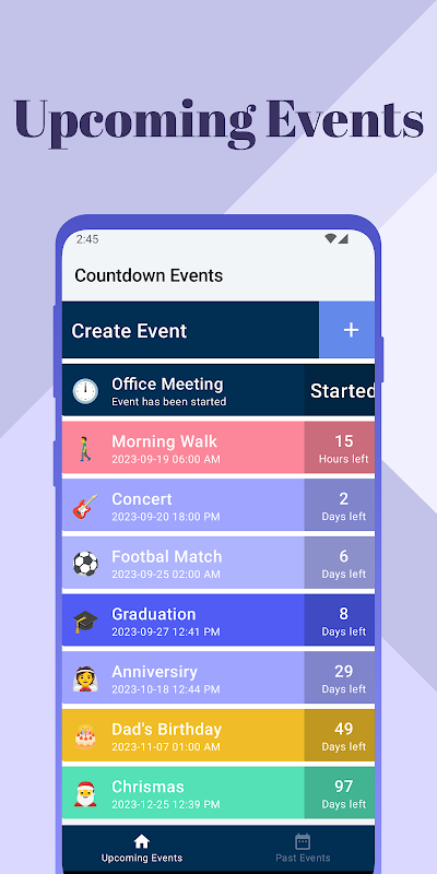 इवेंट ट्रैकर - काउंटडाउन टाइम आपका अंतिम इवेंट प्रबंधन साथी है, जिसे आपके व्यवस्थित करने के तरीके को सरल बनाने और आपके सभी इवेंट पर अपडेट रहने के लिए डिज़ाइन किया गया है। चाहे वह कोई सामाजिक मेलजोल हो, व्यावसायिक बैठक हो या कोई व्यक्तिगत उपलब्धि हो, यह सुविधा संपन्न ऐप आपके हर पल को गिनने में मदद करने के लिए मौजूद है।