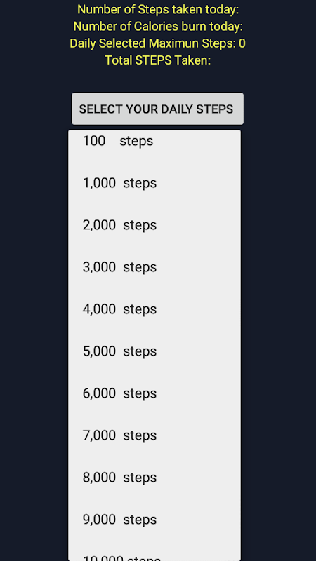 3. Click on "Select Your Daily Steps" button and choose your daily plan for walking.