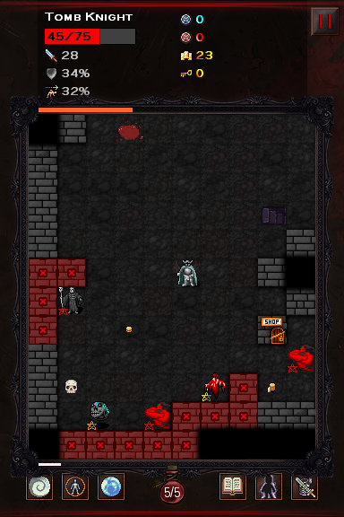 Evils return is a mix of Hack’n’Slash, RPG and Dungeon. Game is based on randomly generated 10x12 block floors. After unhiding them, there can be evil monster, chest, store, gold, shrine etc. The point is to reach, as far away floor, as you can do. Many times you will have to deal with enemies to get lower floor, so you have to find way to defeat them.